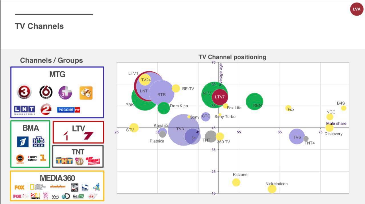 — Дело в том, что BBC у вас нет даже в топ-20 телеканалов. К сожалению, российские каналы, если просуммировать: РТР, РБК, ТНТ, НТВ — имеют 50% рынка. И они присутствуют почти в каждой телевизионной группе, что также интересно. Их продают, с ними работают почти все крупные латвийские медиа-группы. Не видите здесь угрозы и влияет ли это на выборы?